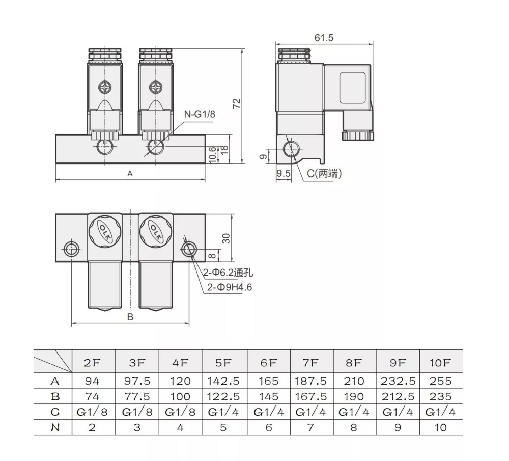 10 pcs पर्यंत 2V025 सोलेनोइड वाल्व्ह मॅनिफोल्ड व्हॉल्व्ह बनवू शकतो.