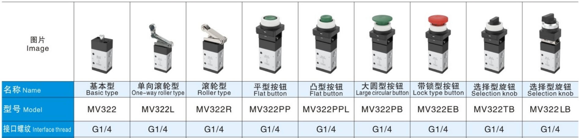 एमव्ही 322 मेकॅनिकल वाल्व्ह थ्रेड जी 1/4 आहे.