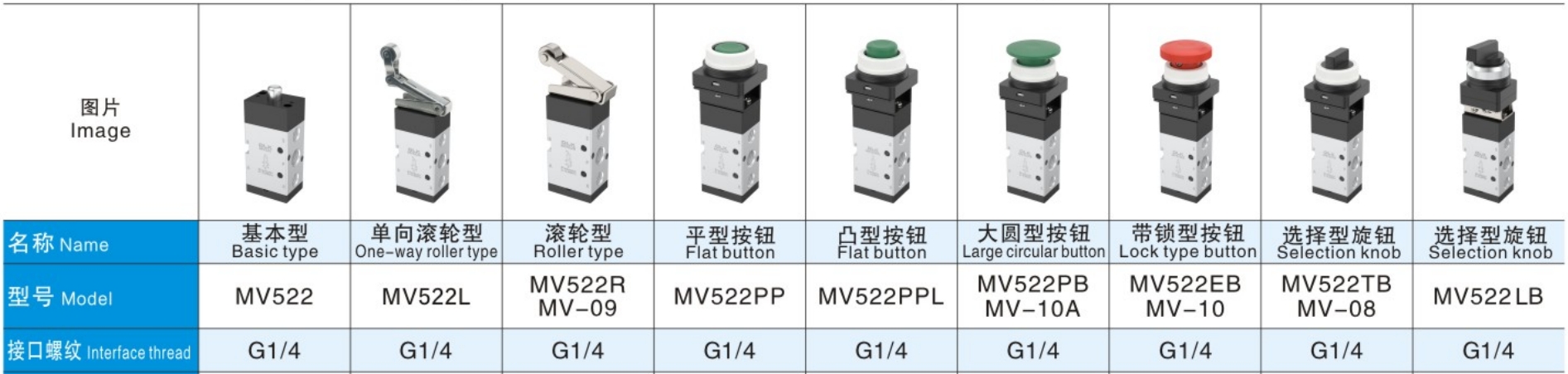 एमव्ही 522 मालिका मेकॅनिकल बटण नियंत्रण वाल्व 5 मार्ग सामान्य पॅरामीटर्स