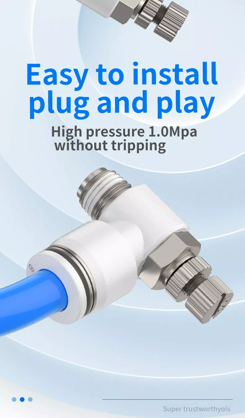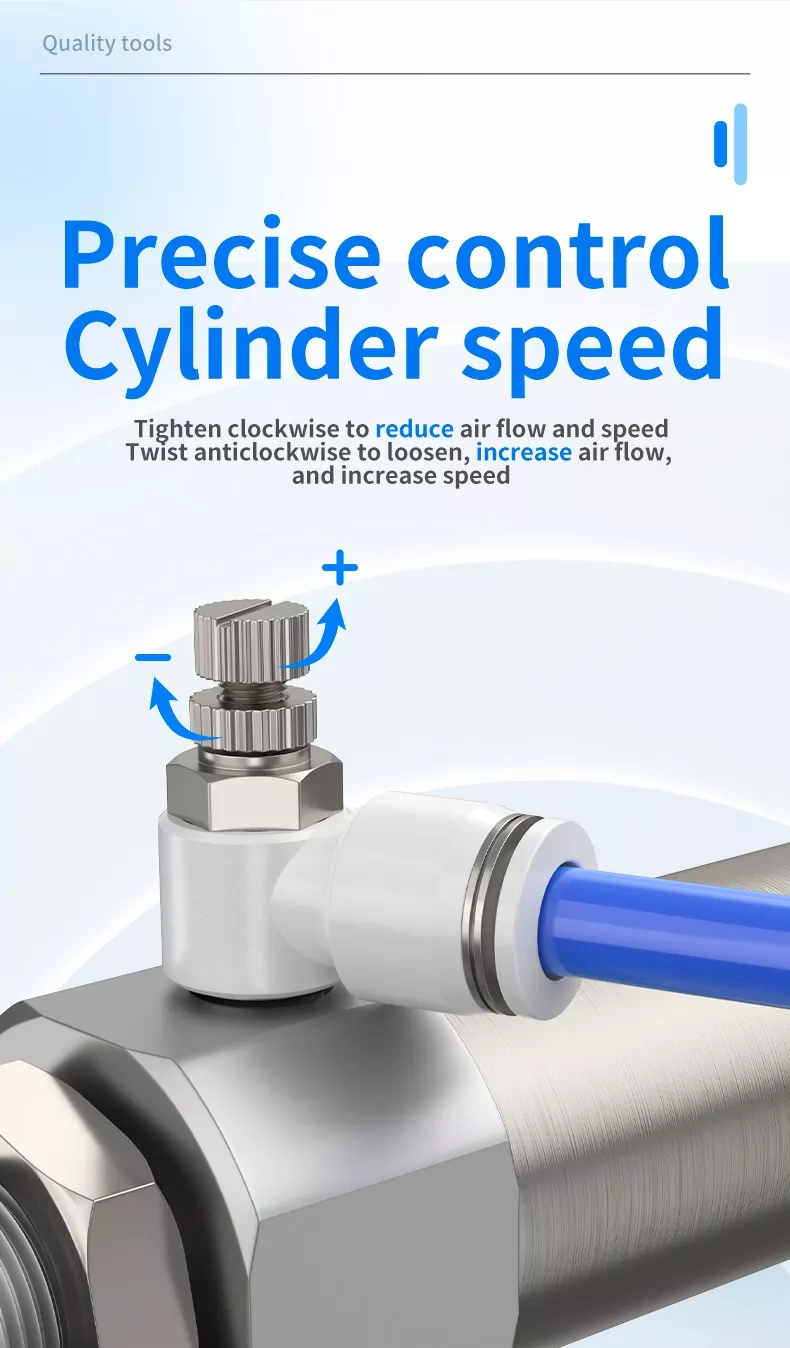 स्पीड कंट्रोलर हे सामान्य वायवीय घटक आहेत जे ॲक्ट्युएटर्सचा विस्तार आणि मागे घेण्याची गती समायोजित करण्यासाठी वापरले जातात. थ्रॉटल व्हॉल्व्ह हे मूलत: प्रवाह-समायोजित करणारे घटक आहेत जे सिलेंडरचा वेग नियंत्रित करतात, परंतु त्यांच्या स्थापनेची स्थिती, थ्रॉटलिंग दिशानिर्देश आणि शरीर रचना भिन्न असतात. नियंत्रण पद्धतीनुसार, ते एक्झॉस्ट-थ्रॉटलिंग प्रकार आणि इनलेट-थ्रॉटलिंग प्रकारात विभागले जाऊ शकतात.