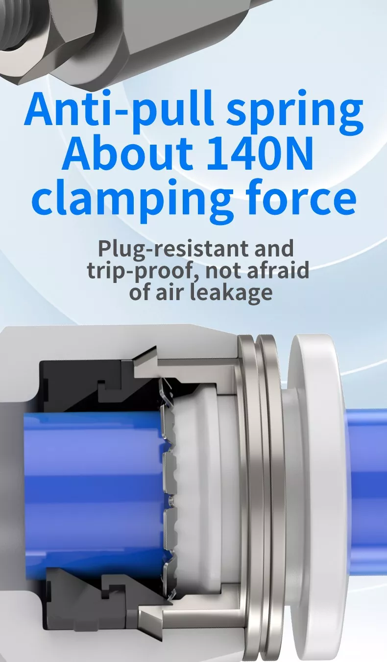 फिटिंगच्या टोकापासून वाहणारी हवा नियंत्रित करा. थ्रेडेड एंडमधून बाहेर पडणाऱ्या फिटिंग्जमधून येणारी हवा निर्बंधाशिवाय असते.