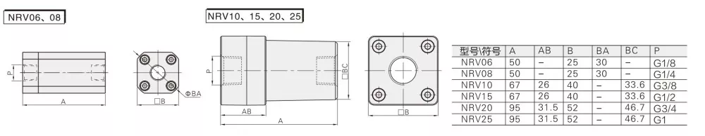 NRV चेक व्हॉल्व्हमध्ये कॉम्पॅक्ट आणि मजबूत डिझाइन असते, जे सहसा ॲल्युमिनियम, पितळ किंवा स्टेनलेस स्टीलचे बनलेले असते. हे द्रव किंवा हवेला फक्त एकाच दिशेने वाहू देते, बॅक-फ्लो प्रतिबंधित करते आणि सिस्टमचे संरक्षण करते.