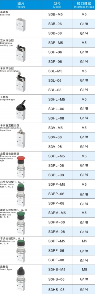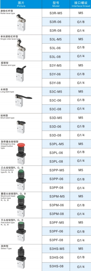 २. एस P पीएफ, एस PPPM, एस 3 पीपी, एस 3 पीएल, एस 3 वाय, एस 3 एचएस, एस 3 सी, एस 3 डी मालिका व्यक्तिचलितपणे ऑपरेट केली जाते, ज्यामध्ये वेगवेगळ्या परिस्थितीत सोयीस्कर वापरासाठी नियंत्रण हेडचे विविध स्ट्रक्चरल आकार आहेत.
