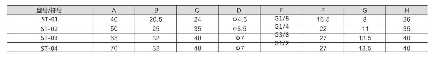 जर एअर ट्यूब फिटिंग्ज योग्यरित्या निवडली गेली नाहीत, ज्यामुळे हवेचे सेवन किंवा बंदरात एक्झॉस्ट खूपच लहान असेल तर वाल्व कोर पूर्णपणे बदलू शकत नाही, ज्यामुळे सर्व बंदर जोडले जाऊ शकतात. हे प्रतिबंधित केले पाहिजे. एसटी -01: जी 1/8; एसटी -02: जी 1/4; एसटी -03: जी 3/8; एसटी -04: जी 1/2